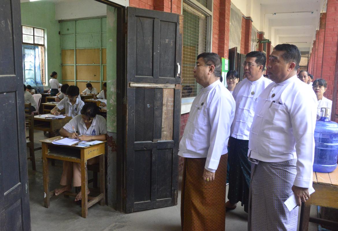 ပြည်ထောင်စုဝန်ကြီး ဒေါက်တာညွန့်ဖေ ၂၀၂၄-၂၀၂၅ ပညာသင်နှစ် တက္ကသိုလ်ဝင်စာမေးပွဲ (Grade-12) ဆဋ္ဌမနေ့ ကျောင်းသား ကျောင်းသူများ ဇီ၀ဗေဒနှင့် ဘောဂဗေဒဘာသာရပ် အေးချမ်းစွာဖြေဆိုနေမှု ကြည့်ရှုအားပေး
