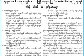 ရန်ကုန်မြို့နှင့် မန္တလေးမြို့အတွက် ရည်ညွှန်းလက်ကားဈေးနှုန်းများနှင့် ပြည်ထောင်စုနယ်မြေ နေပြည်တော်၊ တိုင်းဒေသကြီး/ပြည်နယ် မြို့တော်များအတွက် ရည်ညွှန်းလက်လီဈေးနှုန်းများ
