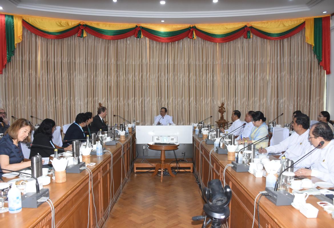 ပြည်ထောင်စုဝန်ကြီး ဒေါက်တာသက်ခိုင်ဝင်း ဆွစ်ဇာလန်နိုင်ငံ ဂျီနီဗာမြို့အခြေစိုက် GAVI အဖွဲ့မှ Senior Country Manager Mr. Dirk Gehl နှင့် အဖွဲ့အား လက်ခံတွေ့ဆုံ