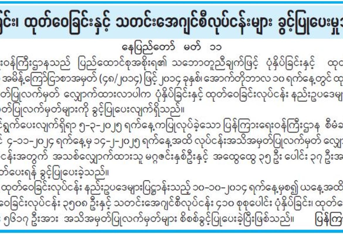ပုံနှိပ်ခြင်း၊ ထုတ်ဝေခြင်းနှင့် သတင်းအေဂျင်စီလုပ်ငန်းများ ခွင့်ပြုပေးမှုအခြေအနေ