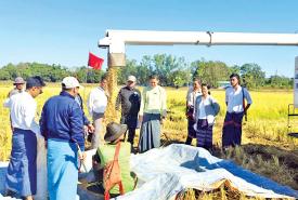 လှိုင်းဘွဲမြို့နယ် ဒိုင်းပြကုန်းကျေးရွာ၌ မိုးစပါးစံကွက်ရိတ်သိမ်း၊ တစ်ဧကအထွက်နှုန်း ၁၁၅ ဒသမ ၇၀ တင်းထွက်ရှိ