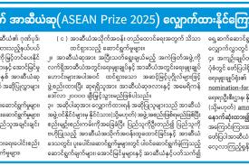 ၂၀၂၅ ခုနှစ်အတွက် အာဆီယံဆု(ASEAN Prize 2025) လျှောက်ထားနိုင်ကြောင်း ကြေညာချက်