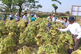 ဒုတိယဝန်ကြီး ဦးမြင့်စိုး ဝါးခယ်မမြို့နယ်၊ ကြာဖြူကျေးရွာ၌ ရုရှားနေကြာမျိုးများ ခူးဆွတ်ရိတ်သိမ်းနေမှု ကြည့်ရှုအားပေး