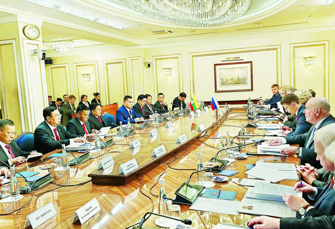 နိုင်ငံတော်စီမံအုပ်ချုပ်ရေးကောင်စီ ဥက္ကဋ္ဌ နိုင်ငံတော်ဝန်ကြီးချုပ် ဗိုလ်ချုပ်မှူးကြီး မင်းအောင်လှိုင် ရုရှားဖက်ဒရေးရှင်းနိုင်ငံ ဖက်ဒရယ်ကောင်စီလွှတ်တော် ဥက္ကဋ္ဌ H.E. Ms. Valentina Matviyenko နှင့် တွေ့ဆုံဆွေးနွေး