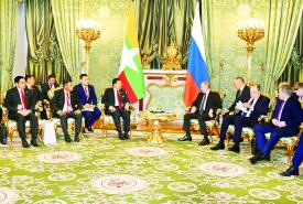 နိုင်ငံတော်စီမံအုပ်ချုပ်ရေးကောင်စီ ဥက္ကဋ္ဌ နိုင်ငံတော်ဝန်ကြီးချုပ် ဗိုလ်ချုပ်မှူးကြီး မင်းအောင်လှိုင် ရုရှားဖက်ဒရေးရှင်းနိုင်ငံသမ္မတ H.E. Vladimir Vladimirovich Putinနှင့် သီးခြားတွေ့ဆုံဆွေးနွေး