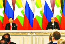 နိုင်ငံတော်ဝန်ကြီးချုပ် ဗိုလ်ချုပ်မှူးကြီး မင်းအောင်လှိုင်နှင့် ရုရှားဖက်ဒရေးရှင်းနိုင်ငံ သမ္မတ H.E. Vladimir Vladimirovich Putin တို့ မီဒီယာများနှင့် တွေ့ဆုံစဉ် နှစ်နိုင်ငံအပြန်အလှန် ပူးတွဲကြေညာချက်များနှင့် ပြောကြားချက်များ