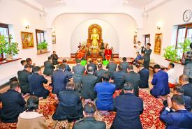 နိုင်ငံတော်စီမံအုပ်ချုပ်ရေးကောင်စီဥက္ကဋ္ဌ နိုင်ငံတော်ဝန်ကြီးချုပ် ဗိုလ်ချုပ်မှူးကြီးမင်းအောင်လှိုင် ဦးဆောင်သည့် မြန်မာအဆင့်မြင့်ကိုယ်စားလှယ်အဖွဲ့ မြန်မာထေရဝါဒဗုဒ္ဓစင်တာသို့သွားရောက်၍ ဆရာတော်များအား ဖူးမြော်ကြည်ညို