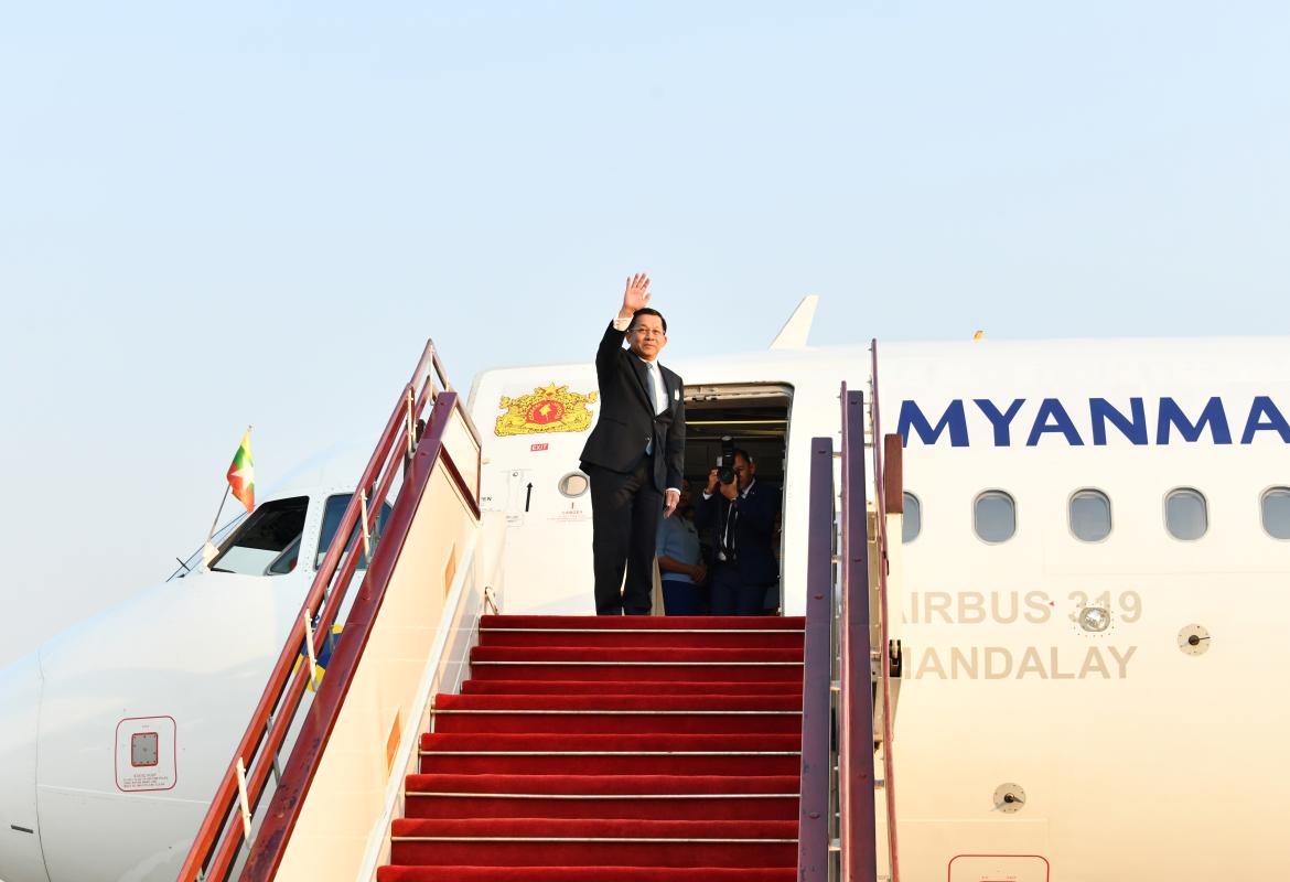 နိုင်ငံတော်စီမံအုပ်ချုပ်ရေးကောင်စီဥက္ကဋ္ဌ နိုင်ငံတော်ဝန်ကြီးချုပ် ဗိုလ်ချုပ်မှူးကြီး မင်းအောင်လှိုင် ဦးဆောင်သည့် မြန်မာအဆင့်မြင့်ကိုယ်စားလှယ်အဖွဲ့ ရုရှားဖက်ဒရေးရှင်းနိုင်ငံသို့ ထွက်ခွာ