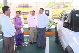ဒုတိယဝန်ကြီး ဦးရင်မာင်ညွန့်နှင့် ဦးဝင်းဖေ၊ ဒုတိယမြို့တော်ဝန် ဦးမောင်မောင် EV Charging Station ဖွင့်ပွဲအခမ်းအနား တက်ရောက်