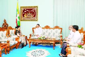 ပြည်ထောင်စုဝန်ကြီး ဦးသန်းဆွေ မြန်မာနိုင်ငံဆိုင်ရာ အိန္ဒိယသံအမတ်ကြီးအား လက်ခံတွေ့ဆုံ
