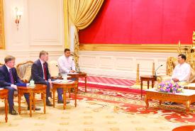 နိုင်ငံတော်စီမံအုပ်ချုပ်ရေးကောင်စီ ဥက္ကဋ္ဌ နိုင်ငံတော်ဝန်ကြီးချုပ် ဗိုလ်ချုပ်မှူးကြီး မင်းအောင်လှိုင်ထံ ထိုင်းနိုင်ငံ နိုင်ငံခြားရေးဝန်ကြီး H.E. Mr. Maris Sangiampongsa ဦးဆောင်သည့် ကိုယ်စားလှယ်အဖွဲ့ လာရောက်ဂါရဝပြုတွေ့ဆုံ