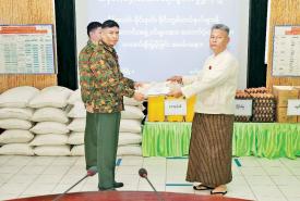 ဝါးခယ်မမြို့နယ်အတွင်းသို့ ယာယီရွှေ့ပြောင်းနေထိုင်သူ ပြည်သူများအား သုံးလစာ ထောက်ပံ့ငွေနှင့် ပစ္စည်းများပေးအပ်
