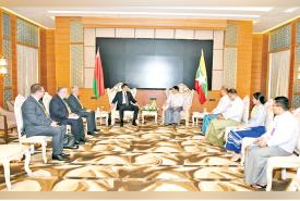 ပြည်ထောင်စုသမ္မတ မြန်မာနိုင်ငံတော် ယာယီသမ္မတ နိုင်ငံတော်လုံခြုံရေးနှင့် အေးချမ်းသာယာရေး ကော်မရှင်ဥက္ကဋ္ဌ ဗိုလ်ချုပ်မှူးကြီးမင်းအောင်လှိုင်ထံ ရုရှားဖက်ဒရေးရှင်းနိုင်ငံ ဒူးမားလွှတ်တော် ဒုတိယဥက္ကဋ္ဌ ဦးဆောင်သည့် ကိုယ်စားလှယ်အဖွဲ့က လာရောက်ဂါရဝပြုတွေ့ဆုံ