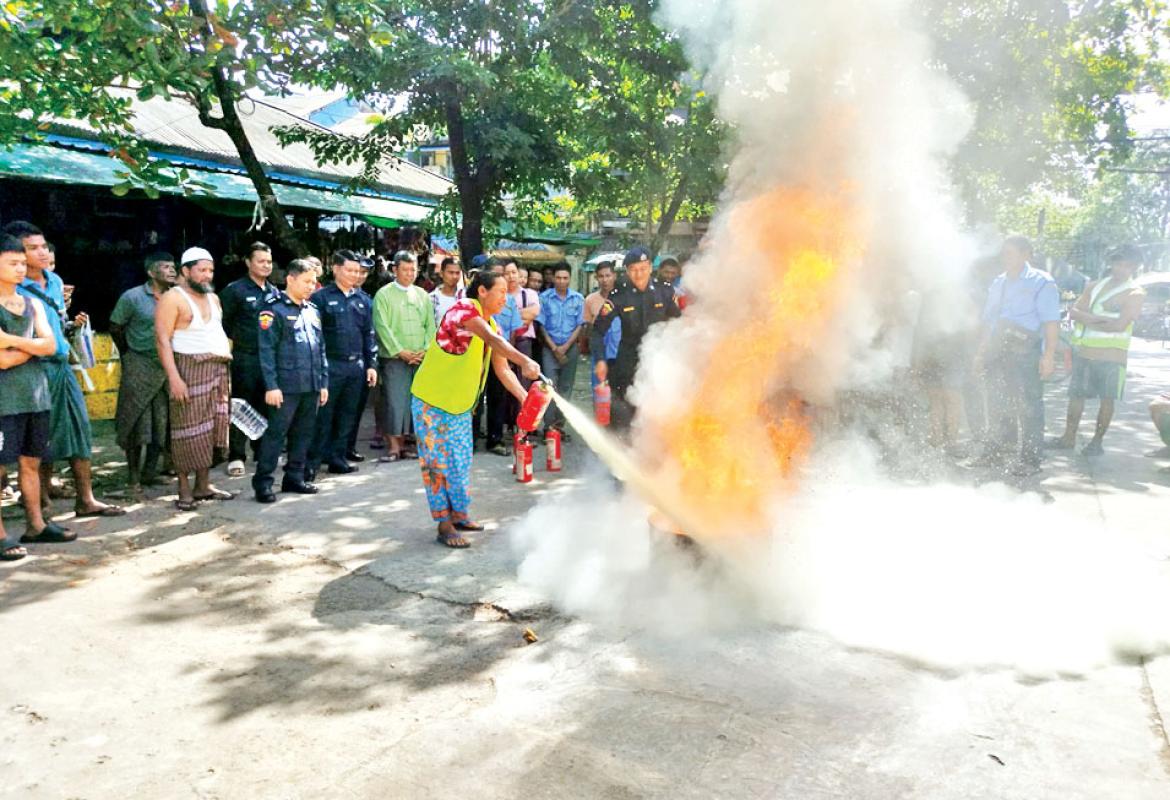 ပုဇွန်တောင်စျေး၌ မီးငြှိမ်းသတ်ရေး လက်တွေ့သရုပ်ပြ