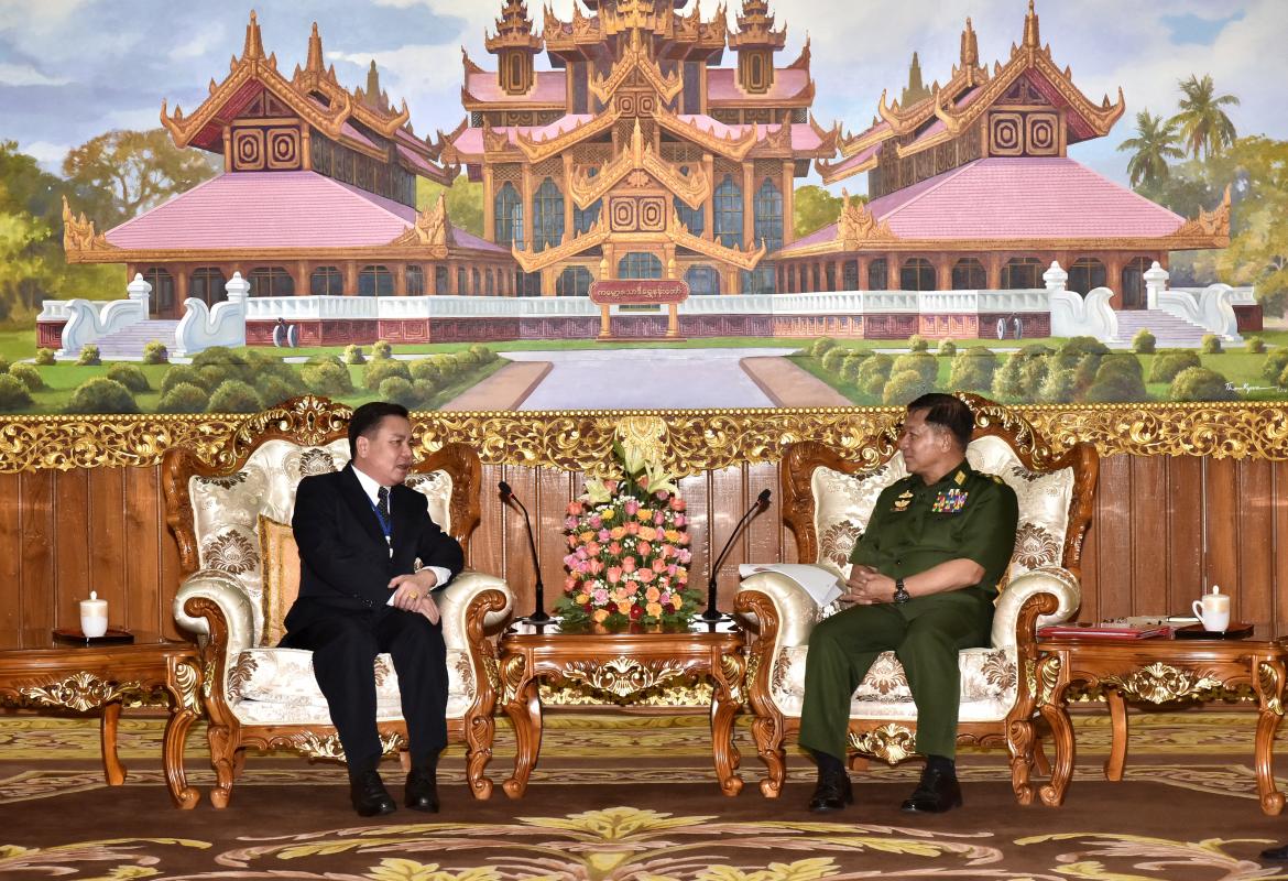 တပ်မတော်ကာကွယ်ရေးဦးစီးချုပ် ဗိုလ်ချုပ်မှူးကြီး မင်းအောင်လှိုင် မြန်မာနိုင်ငံဆိုင်ရာ လာအိုသံအမတ်ကြီး Mr. Heuangseng Khamdalavong အား လက်ခံတွေ့ဆုံ