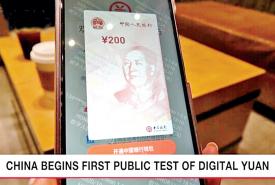 တရုတ်နိုင်ငံ၌ ဒစ်ဂျစ်တယ်ငွေကြေးစနစ် ပထမဆုံးအကြိမ် စမ်းသပ်သုံးစွဲ