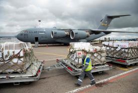 အသက်ရှူအထောက်အကူပြုကိရိယာ ၁၅၀ ခန့်တင်ဆောင်သော အမေရိကန်လေယာဉ် ရုရှားသို့ဆိုက်ရောက်