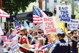 အမေရိကန်ပြည်ထောင်စု ကယ်လီဖိုးနီးယားပြည်နယ်ရဲ့ မြို့အတော်များများမှာရှိတဲ့ ဆန္ဒဖော်ထုတ်သူတွေဟာ ကိုဗစ်-၁၉ ဖြစ်ပွားမှုကို