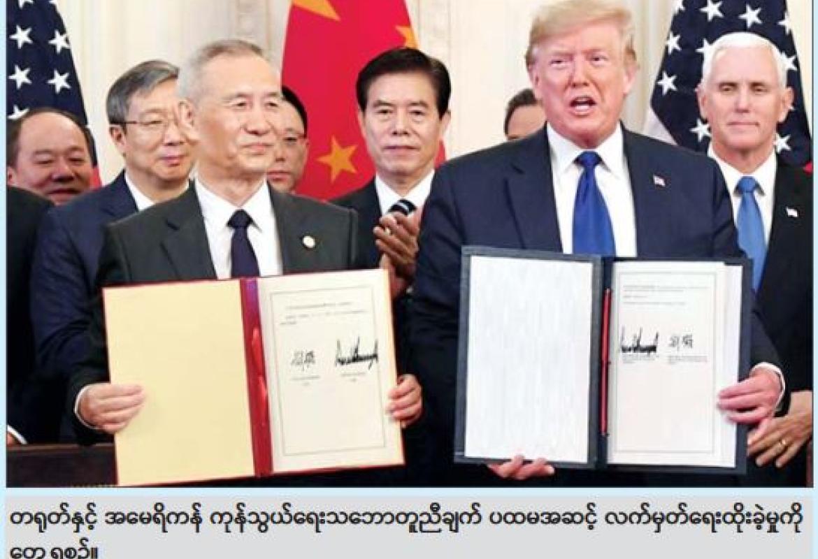 မေရိကန်နိုင်ငံနဲ့တရုတ်နိုင်ငံကြားက နှစ်နှစ်နီးပါးကြာပြီဖြစ်တဲ့ ကုန်သွယ်ရေးစစ်ပွဲကို ပြေငြိမ်းနိုင်မယ့် သဘောတူညီချက်ရဲ့ ပထမအဆင့်ကို မနေ့က နှစ်နိုင်ငံက လက်မှတ်ရေးထိုးလိုက်တာကိုတွေ့ရပါတယ်။
