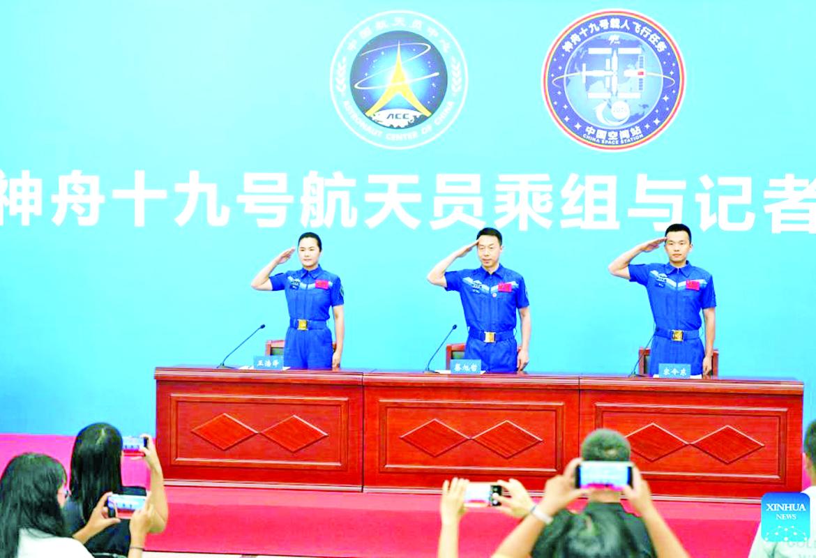 တရုတ်နိုင်ငံ၏ ရှန်ကျို့ ၁၉ အာကာသယာဉ်မှ အာကာသယာဉ်မှူးများ မီဒီယာနှင့်တွေ့ဆုံ