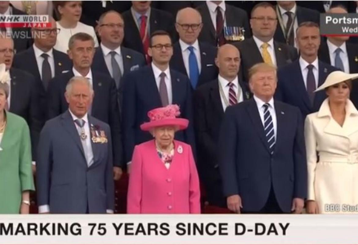 အမေရိကန်သမ္မတ ဒေါ်နယ်ထရန့်သည် ဗြိတိန်နိုင်ငံတွင် ကျင်းပသော ၇၅ နှစ်မြောက် D-Day ကမ်းတက်တိုက်ပွဲ အထိမ်းအမှတ် အခမ်းအနား၌ အခြားသော ကမ္ဘာ့ခေါင်းဆောင်များနှင့်အတူ ပါဝင်တက်ရောက်ခဲ့ကြောင်း သိရသည်။