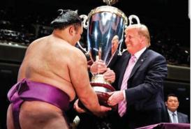 အမေရိကန်သမ္မတ ဒေါ်နယ်ထရန့်က the Summer Grand ဆူမိုနပန်းအားကစားပြိုင်ပွဲတွင် အနိုင်ရရှိသူနပန်းကစားသမားအား အမေရိကန်သမ္မတဖလားကို ပေးအပ်ချီးမြှင့်ခဲ့ကြောင်း