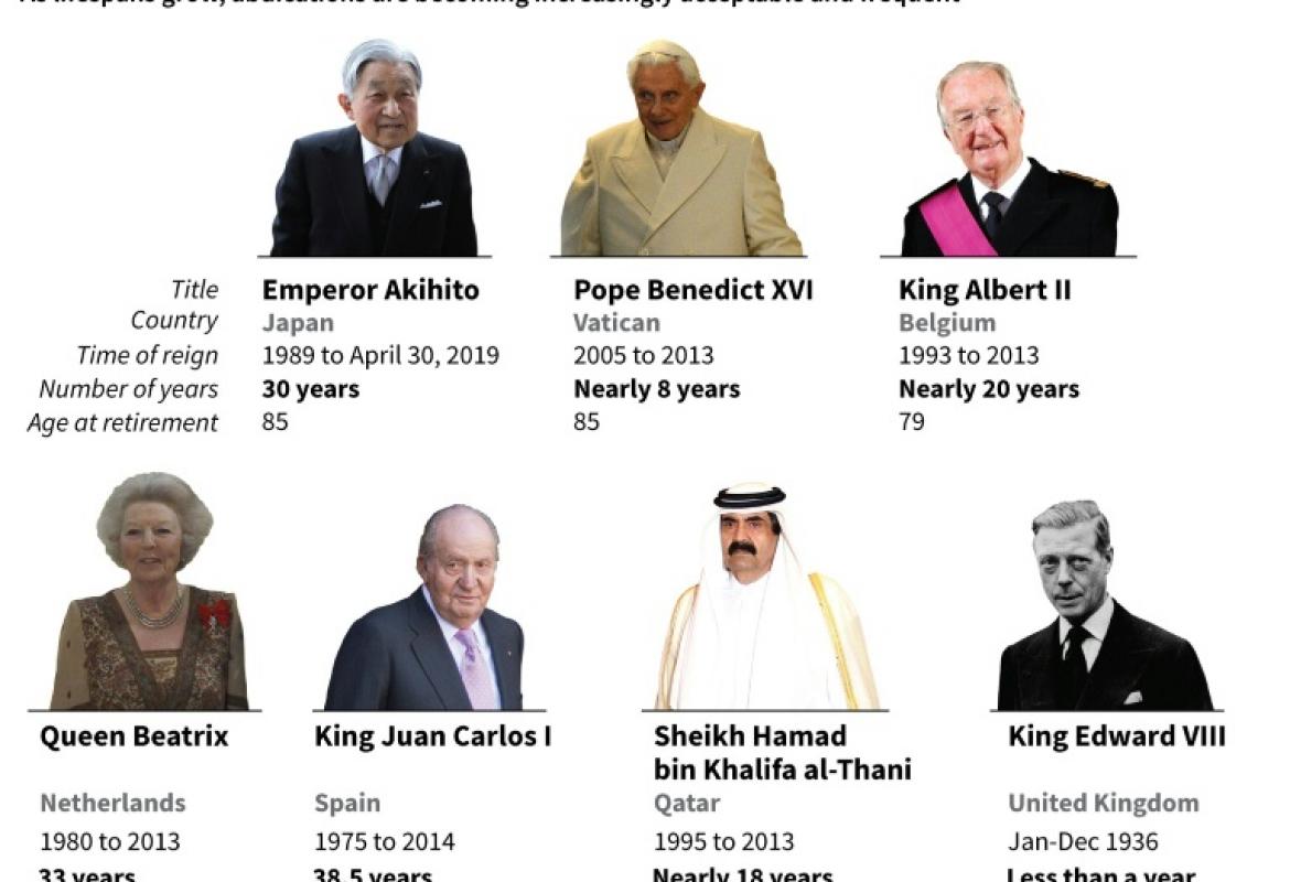 ခေတ်သစ်မှာ ဘုရင်သက်တမ်းမကုန်ခင် ရာထူးကနှုတ်ထွက်ပေးခြင်း ပိုမိုများပြားလာ