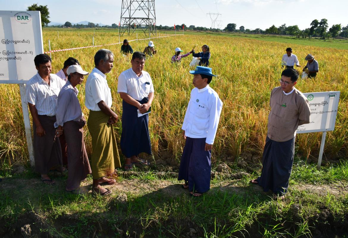 နေပြည်တော်ကောင်စီဥက္ကဋ္ဌ ဦးသန်းထွန်းဦး ဇေယျာသီရိမြို့နယ်၌ စပါးသားဆက်လိုင်းများ ရွေးချယ်ခြင်း စမ်းသပ်ကွက်ပြုလုပ်နေမှု ကြည့်ရှုစစ်ဆေး