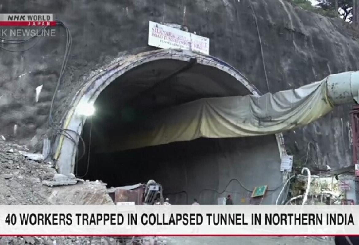 အိန္ဒိယနိုင်ငံမြောက်ပိုင်းတွင် ဆောက်လုပ်ဆဲဥမင်လိုဏ်ခေါင်းတစ်စိတ်တစ်ပိုင်းပြိုကျမှုကြောင့် ဆောက်လုပ်ရေးလုပ်သား ၄၀ ပိတ်မိနေဆဲဖြစ်ပြီး ကယ်ဆယ်ရေးသမားများက ၎င်းတို့ကိုအပြင်သို့ကယ်ထုတ်ရန်ကြိုးစားလုပ်ဆောင်လျက်ရှိသည်။