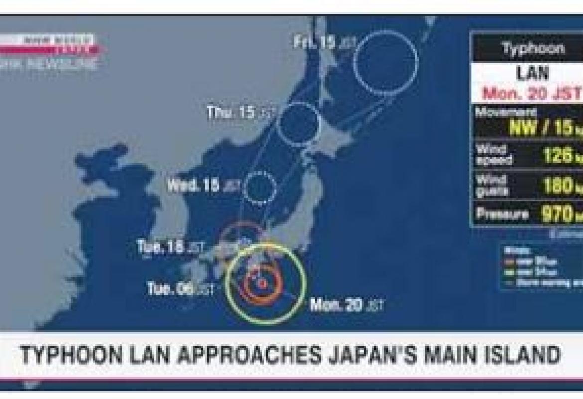 တိုင်ဖွန်းမုန်တိုင်း “လန် ဂျပန်နိုင်ငံ ဟွန်ရှူကျွန်းပေါ် ဦးတည်ရွေ့လျား