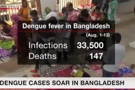 ဘင်္ဂလားဒေ့နိုင်ငံ၌ ဩဂုတ်လအတွင်း သွေးလွန်တုပ်ကွေးရောဂါဖြစ်ပွားသူပေါင်း ၃၃၅၀၀ ကျော်ရှိလာ