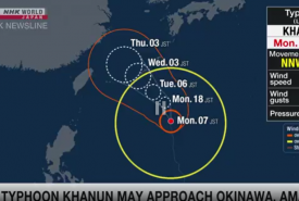ဂျပန်နိုင်ငံအနောက်တောင်ပိုင်း အိုကီနာဝါ၊ အမာမီဒေသများသို့ တိုင်ဖွန်းမုန်တိုင်းခါနွန် ချဉ်းကပ်လာ