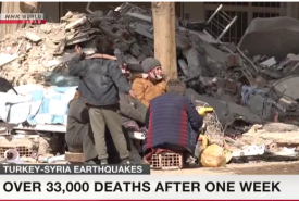 တူကီယဲနှင့်ဆီးရီးယားနိုင်ငံများတွင် ငလျင်များလှုပ်မှုကြောင့် သေဆုံးသူ ၃၃၀၀၀ ကျော်ရှိလာ