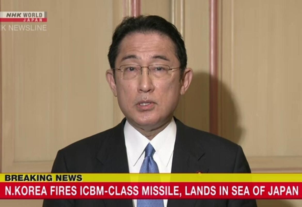 ဂျပန်ဝန်ကြီးချုပ် ကီရှီဒါး ဖူမီယိုက ဂျပန်ပင်လယ်ပြင်အနီးသို့ မြောက်ကိုရီးယားနိုင်ငံ၏ ဒုံးကျည်ကျရောက်မှုကို ပြင်းထန်စွာရှုတ်ချခဲ့သည်။