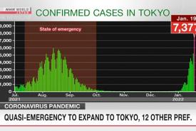တိုကျိုမြို့တော်တွင် ယမန်နေ့က ကိုဗစ်-၁၉ ရောဂါ ကူးစက်ခံရသူ ၇၃၇၇ ဦး ထပ်မံတွေ့ရှိခဲ့ရာ ကူးစက်ဖြစ်ပွားမှု စံချိန်တင်ခဲ့သည်။