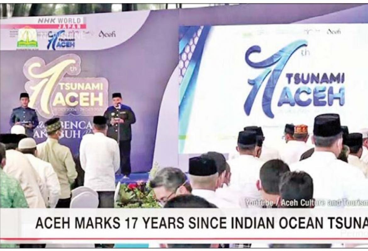 အိန္ဒိယသမုဒ္ဒရာတွင် စတင်ဖြစ်ပွားခဲ့သော ဆူနာမီမုန်တိုင်း အင်ဒိုနီးရှားနိုင်ငံ အာချေးပြည်နယ်သို့ ဝင်ရောက် တိုက်ခတ်ခြင်း ၁၇ နှစ်ပြည့် အောက်မေ့ဖွယ် အခမ်းအနားကို အင်ဒိုနီးရှားနိုင်ငံ အာချေးပြည်နယ်၌ ယနေ့ကျင်းပသည်။