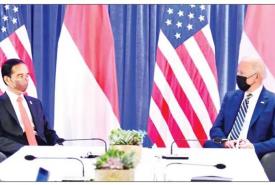 အင်ဒိုနီးရှားသမ္မတ ဂျိုကိုဝီဒိုဒိုသည် စကော့တလန်နိုင်ငံ ဂလက်စဂိုးမြို့၌ ကျင်းပပြုလုပ်သော ဂျီ-၂၀ ထိပ်သီး အစည်းအဝေးတွင် အမေရိကန်သမ္မတ ဂျိုးဘိုင်ဒင်နှင့် သီးခြားတွေ့ဆုံခဲ့ရာ ..............