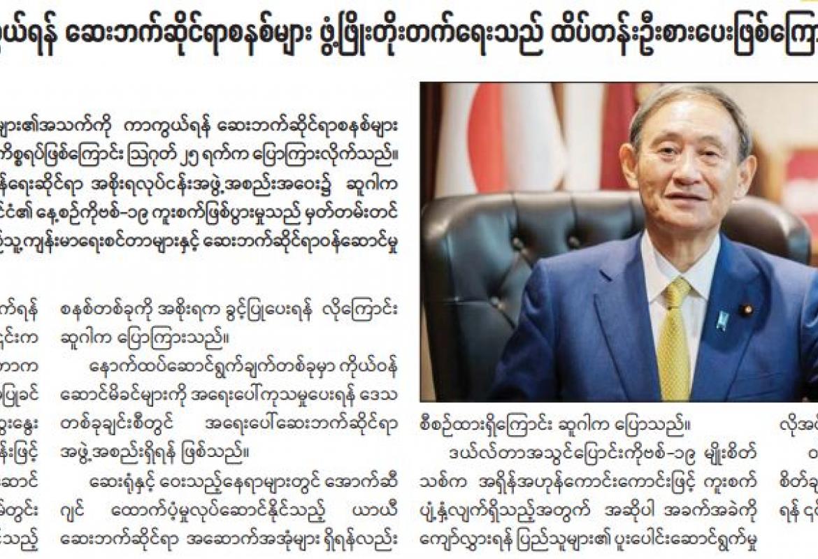 ပြည်သူများ၏ အသက်ကို ကာကွယ်ရန် ဆေးဘက်ဆိုင်ရာ စနစ်များ ဖွံ့ဖြိုးတိုးတက်ရေးသည် ထိပ်တန်းဦးစားပေးဖြစ်ကြောင်း ဂျပန်ဝန်ကြီးချုပ် ဆူဂါပြော