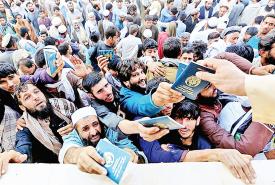 ကဘူးလ် ၂၂ အောက်တိုဘာ အာဖဂန်နစ္စတန်နိုင်ငံအရှေ့ပိုင်းရှိ ပါကစ္စတန် ကောင်စစ်ဝန်ရုံး၌ ဗီဇာလျှောက်ရန် လူအများ အပြား စုဝေးရ
