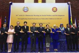 (၁၀)ကြိမ်မြောက်အာဆီယံလူမှုဝန်ထမ်းနှင့် ဖွံ့ဖြိုးတိုးတက်ရေးဆိုင်ရာဝန်ကြီးအဆင့်အစည်းအဝေး ဖွင့်ပွဲ အခမ်းအနားကို လာအိုပြည်သူ့ဒီမိုကရက်တစ်နိုင်ငံ၊ ဗီယင်ကျန်းမြို့ Don Chan Palace ဟိုတယ်အစည်းအဝေးခန်းမ၌ကျင်းပရာ လူမှုဝန်ထမ်း၊ ကယ်ဆယ်ရေးနှင့်ပြန်လည်နေရာချထားရေး ဝန်ကြီးဌာန ပြည်ထောင်စုဝန်ကြီးဒေါက်တာဝင်းမြတ်အေး ဦးဆောင်သော မြန်မာကိုယ်စားလှယ် အဖွဲ့ တက်ရောက်ခဲ့ကြသည်။