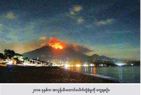 အင်ဒိုနီးရှားနိုင်ငံ ဘာလီကျွန်းပေါ်ရှိ အာဂွန်းမီးတောင် ဧပြီ ၂၁ ရက်တွင် ပေါက်ကွဲခဲ့ရာ မီးခိုးပြာများ မှုတ်ထုတ်ခဲ့ပြီး မြေပြင်အထက် ၂ ကီလိုမီတာခန့် အကွာအထိ