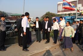 တာချီလိတ်ခရိုင် ကျိုင်းလပ်မြို့ရှိ မြန်မာ-လာအိုချစ်ကြည်ရေးတံတားနှင့် နယ်စပ် စစ်ဆေးရေးစခန်း (Border Check Point)သို့ ပို့ဆောင်ရေးနှင့် ဆက်သွယ်ရေးဝန်ကြီးဌာန၊ ပြည်ထောင်စုဝန်ကြီး ဦးသန့်စင်မောင်သည်