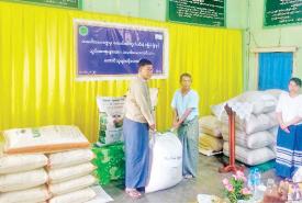 ဖြူးမြို့နယ်၌ သမဝါယမအသင်းသား တောင်သူများအား မြေပဲမျိုးနှင့် သွင်းအားစုများ ပေးအပ်