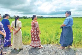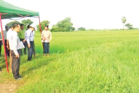 သထုံမြို့နယ်၌ သမဝါယမကဏ္ဍဖြင့် မိုးစပါးစိုက်ပျိုးထားရှိမှု တာဝန်ရှိသူများ ကွင်းဆင်းစစ်ဆေး