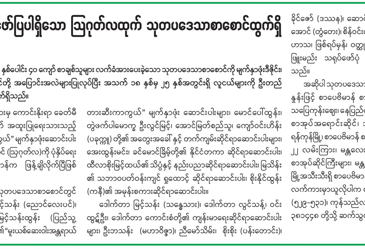 သုတ၊ ရသစုံလင်စွာဖြင့် ဖော်ပြပါရှိသော ဩဂုတ်လထုတ် သုတပဒေသာစာစောင်ထွက်ရှိ