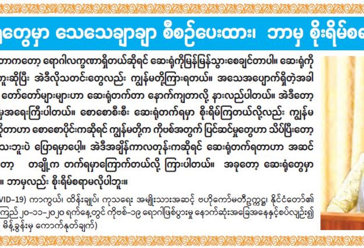 ဆေးရုံတွေမှာ သေသေချာချာ စီစဉ်ပေးထား၊ ဘာမှ စိုးရိမ်စရာမလို