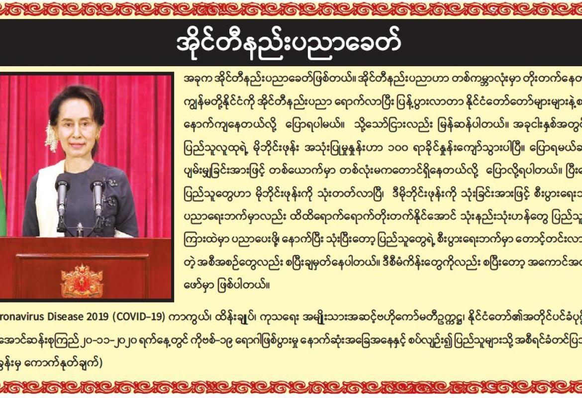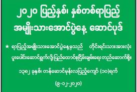 ရန်ကုန်အနောက်ပိုင်းခရိုင် လှိုင်မြို့နယ်တွင် ရန်ကုန်တိုင်းဒေသကြီးအစိုးရ ရန်ကုန်မြို့တော် စည်ပင်သာယာရေးကော်မတီနှင့် မြန်မာနိုင်ငံကုန်သည်များနှင့် စက်မှုလက်မှုလုပ်ငန်းရှင်များ အသင်းချုပ်တို့ ကြီးမှူး၍ သန့်ရှင်းလတ်ဆတ်သော သား၊ ငါး၊ ဟင်းသီးဟင်းရွက် စားသောက်ကုန်များကို ပြည်သူများ အလွယ်တကူဝယ်ယူရရှိနိုင်ရန် အတွက် ယနေ့ နံနက် ၇ နာရီက အမှတ်(၁၀) ရပ်ကွက် ကန်လမ်း လှိုင်မြင့်မိုရ်အိမ်ရာတွင် ကားရှစ်စီးဖြင့် လာရောက်ရောင်းချပေးခဲ့ကြောင်း .......................................