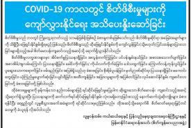 COVID-19 ကာလတွင် စိတ်ဖိစီးမှုများကို ကျော်လွှားနိုင်ရေး အသိပေးနှိုးဆော်ခြင်း