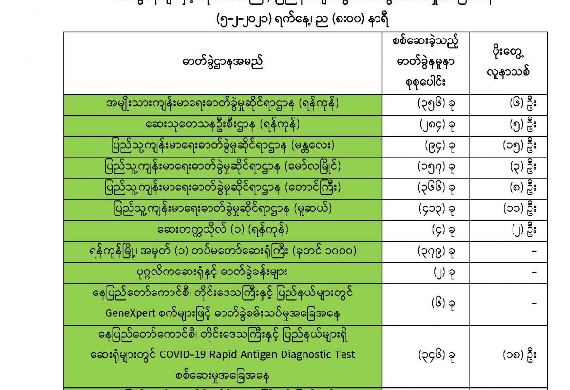 COVID-19 ရောဂါ ဓာတ်ခွဲအတည်ပြုလူနာသစ် (၂၀၉) ဦး တွေ့ရှိ