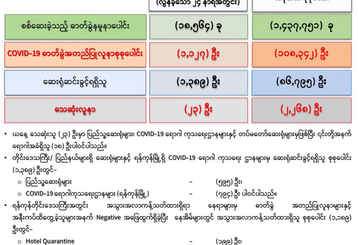 COVID-19 ရောဂါ ဓာတ်ခွဲအတည်ပြု လူနာသစ် ၁,၁၂၇ ဦး တွေ့ရှိ